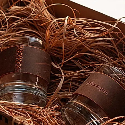 ** Deri Kaplı Viski Bardağı, Derili Cam Bardak, Derilenmiş Bardak **